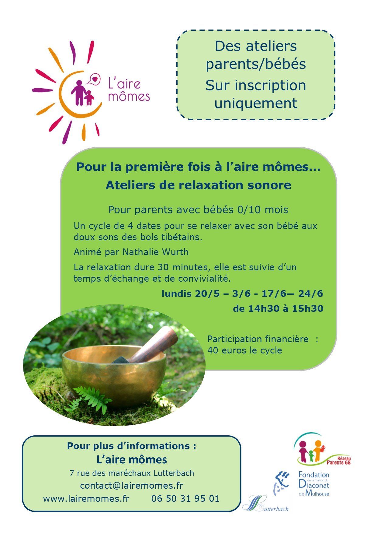 pour la première fois à l'aire mômes, nous organisons des ateliers de relaxation au son des bols tibétains pour parents et bébés